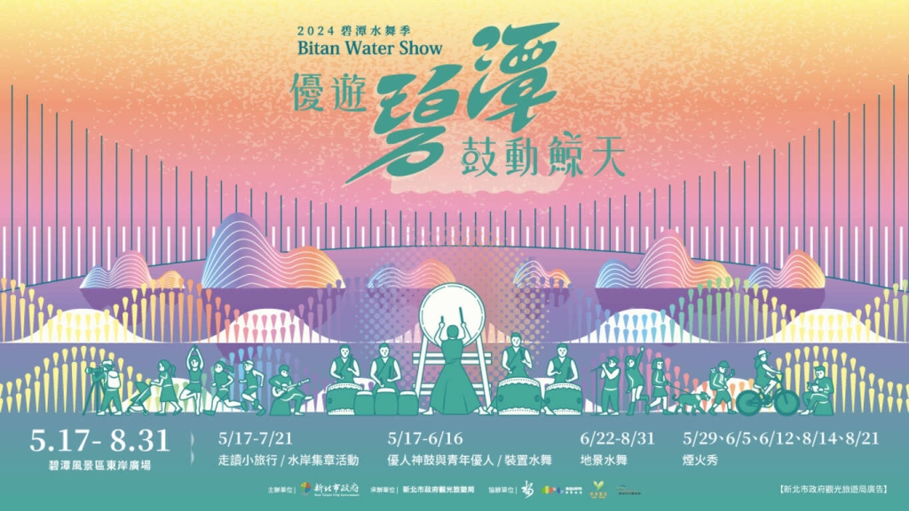 「2024碧潭水舞」推出地景水舞,以巨型鯨魚裝置搭配水花秀和大家見面!自即日起至8月31日,每日下午3時至晚間9時整點與半點展示超萌噴水表演,晚間6時至10時點燈,創造視覺及聽覺雙重饗宴,在碧潭河岸持續閃耀,為今年夏天最鯨艷的打卡新地標。