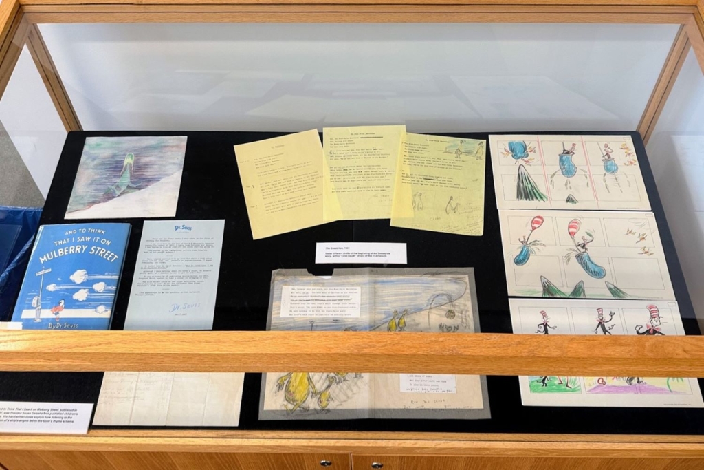 圖書館入口的左邊就是珍稀館藏區,可以看到一小部分蘇斯博士作品的展示。圖書館每年於夏季和三月(蘇斯博士的生日),也會挑出一些館藏做特展。由於這些收藏過於脆弱,平常只限研究人員透過申請才能閱覽。不過圖書館的網站上也有一些已電子化的館藏可以下載,包括他的政治漫畫和廣告作品等。