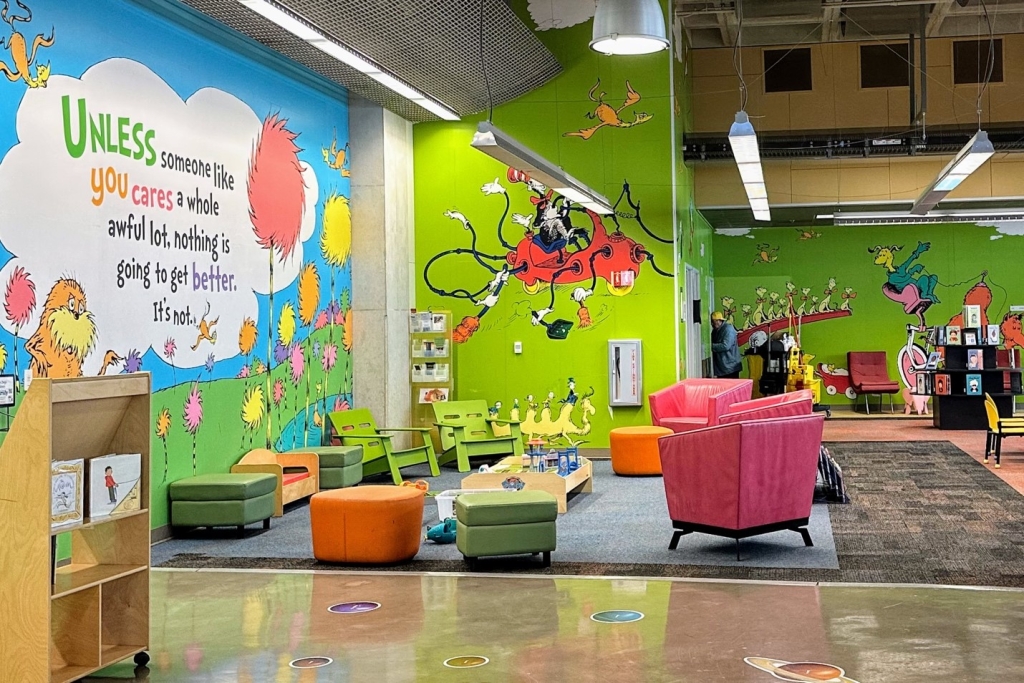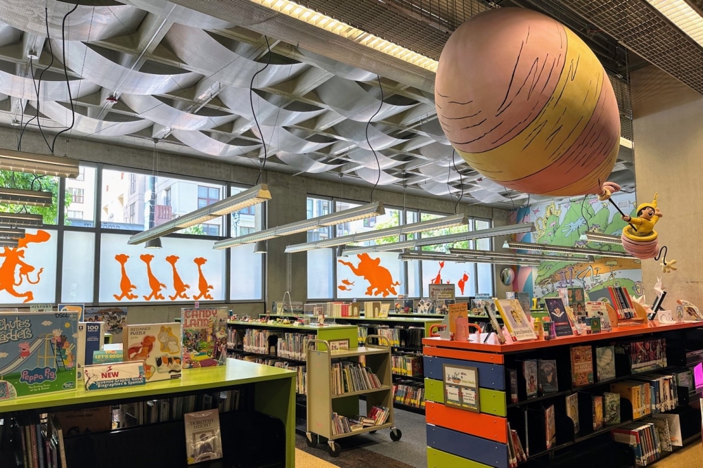 位於中央圖書館的一樓,這間兒童圖書館佔地超過250坪,裡面除了有七萬多本童書館藏之外,還有兒童教育電腦、給特殊兒童的大字體書籍區、遊戲區、安靜角落、幼兒專用廁所、哺乳室等,當然也有蘇斯博士書籍的專區。