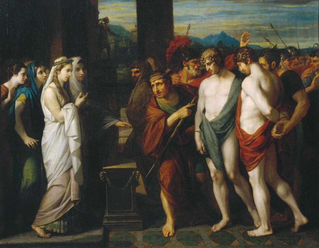 由古希臘劇作家歐里比德斯(Euripides,約⻄元前 480 年 – 406 年)所寫的《伊菲格涅亞在陶里》(Iphigenia in Tauris)中,正好出現一組有趣的好友:雅典的俄瑞斯特斯(Orestes)和皮拉德斯(Pylades)在一次機會下,接受了太陽神阿波羅(Apollo)的神諭,要求他們前往陶里城,偷取月亮女神阿提密斯(Artemis)的神像帶回雅典。然而事情總是不順利,他們還未偷成就先被發現了!當地的女祭司要求依照習俗,將其中一人獻祭以避免女神生氣。這時,俄瑞斯特斯遇到了一個兩難問題:「他該犧牲他自己、讓朋友活下來?」還是「忍痛犧牲朋友,來保障自己的未來?」底下就讓我們來看看從古典、中世紀到文藝復興的三個哲學家,可能會怎麼回答這個難題呢?