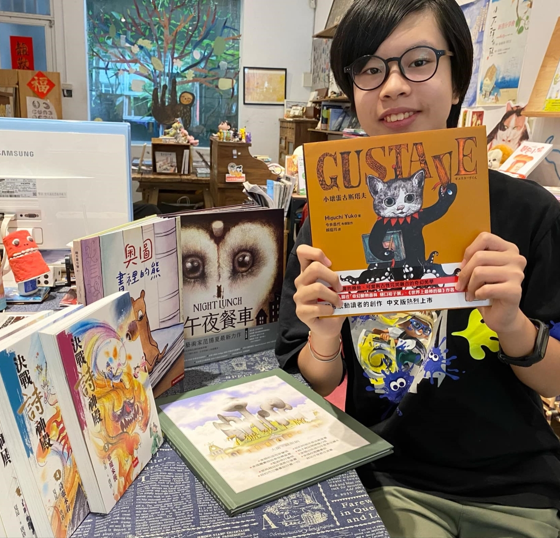 我和古斯塔夫是在《開書店的貓》裡相遇的,那時候他和同伴們帶著自己創作的書去找貓店長兜售,因為書裡會跑出小怪物,被貓店長逐出店外,那時候我就很好奇那本書,還說如果來我的書店,我一定會買下來收藏!