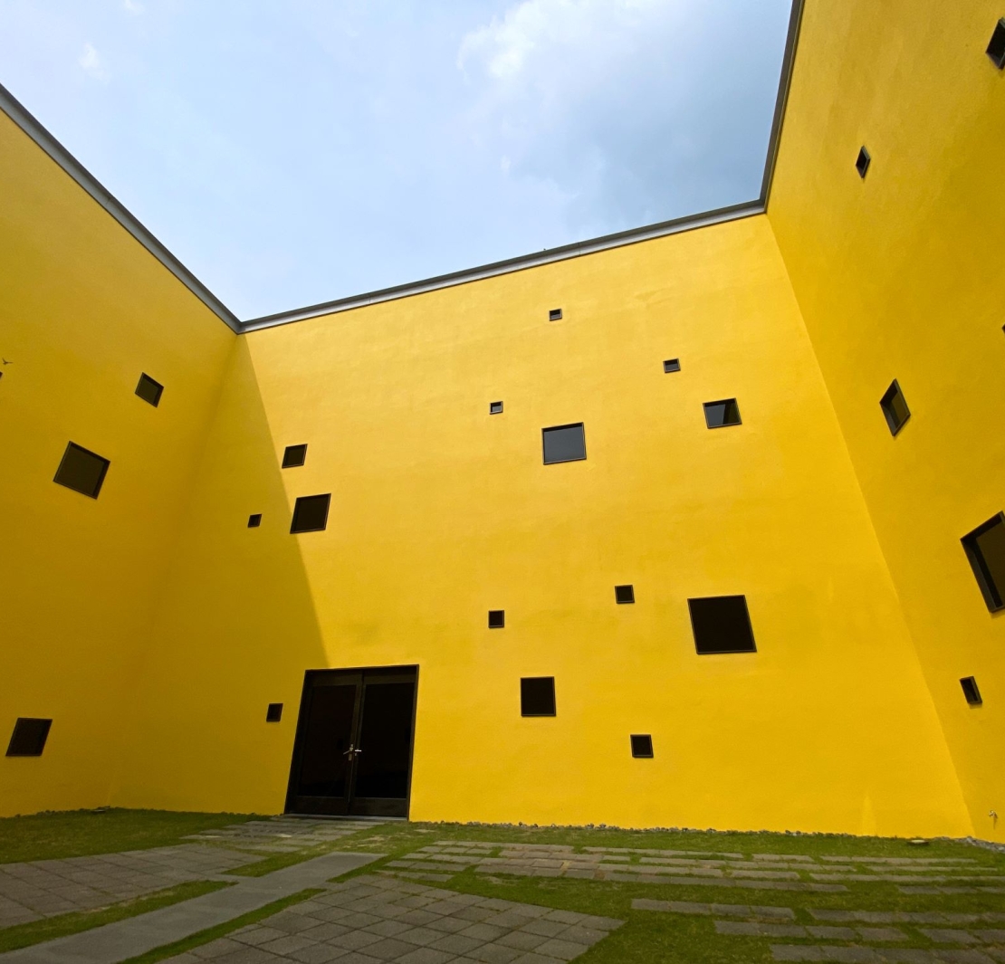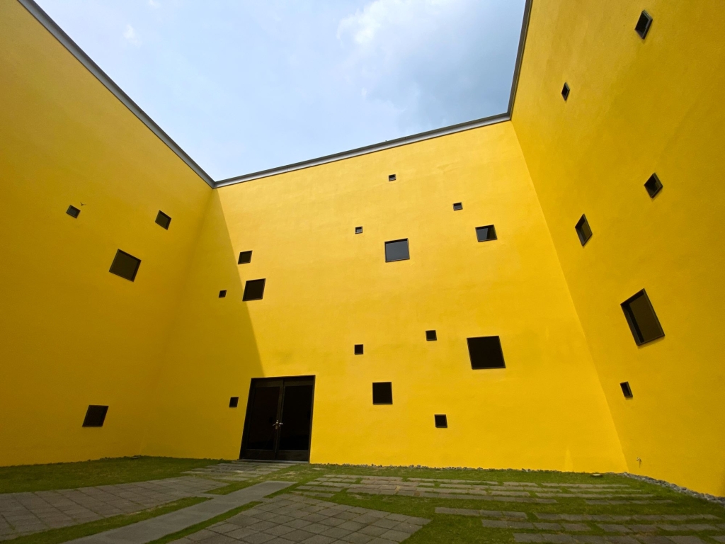 原來在黑色方塊的博物館建築體中,還藏著黃色的方形天井,聽說是熱門的拍照景點!