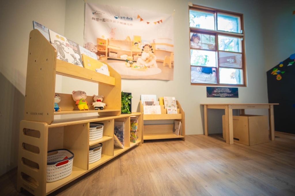 由Kidden Home Taiwan贊助的繪本系列實木家具,搭配遊具以及台灣原創繪本,為親子打造了一個充滿美感的溫馨閱讀空間。
