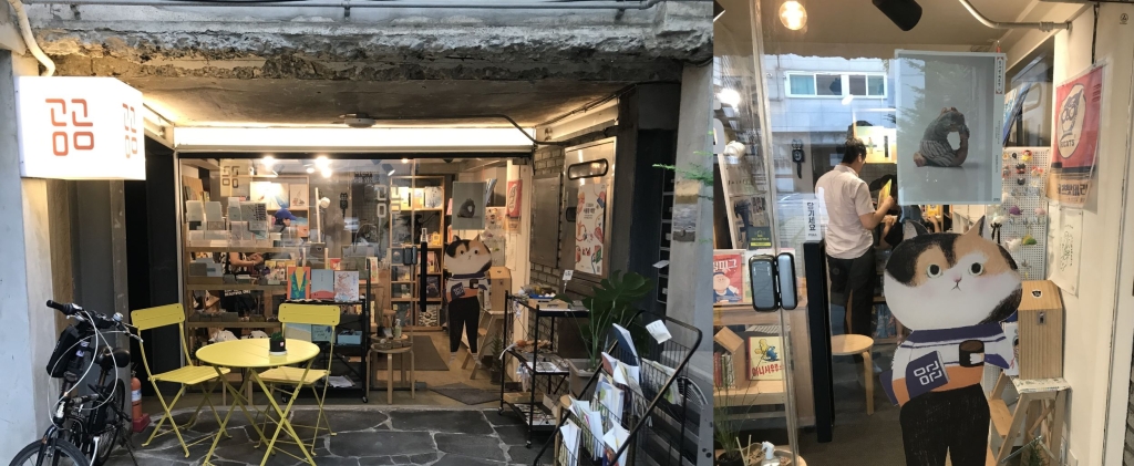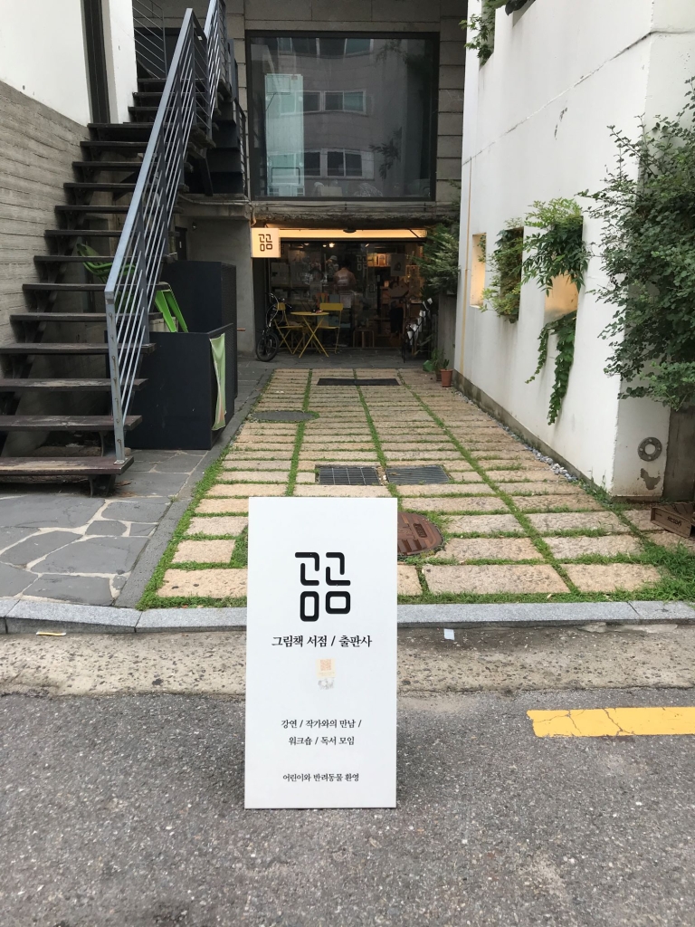 逛完了SOMEBOOKS,繼續往附近的童書店前進。熊熊書店(곰곰)在建築物凹進去的底部,要不是在馬路上放了一個小立牌真的就忽略了。