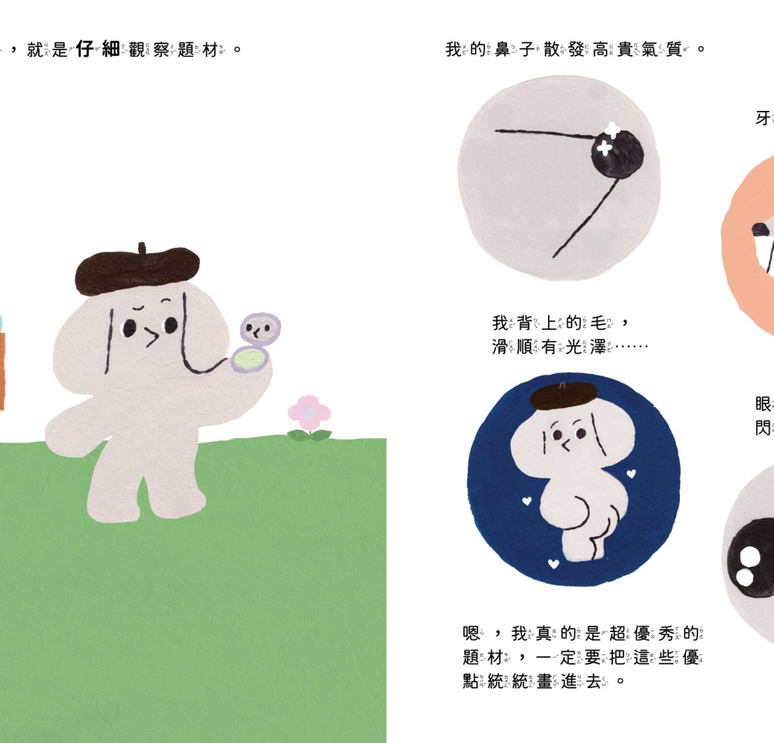 皮皮是狗狗藝術家,身為一隻創意十足的狗狗,今天他想要畫一幅自畫像。