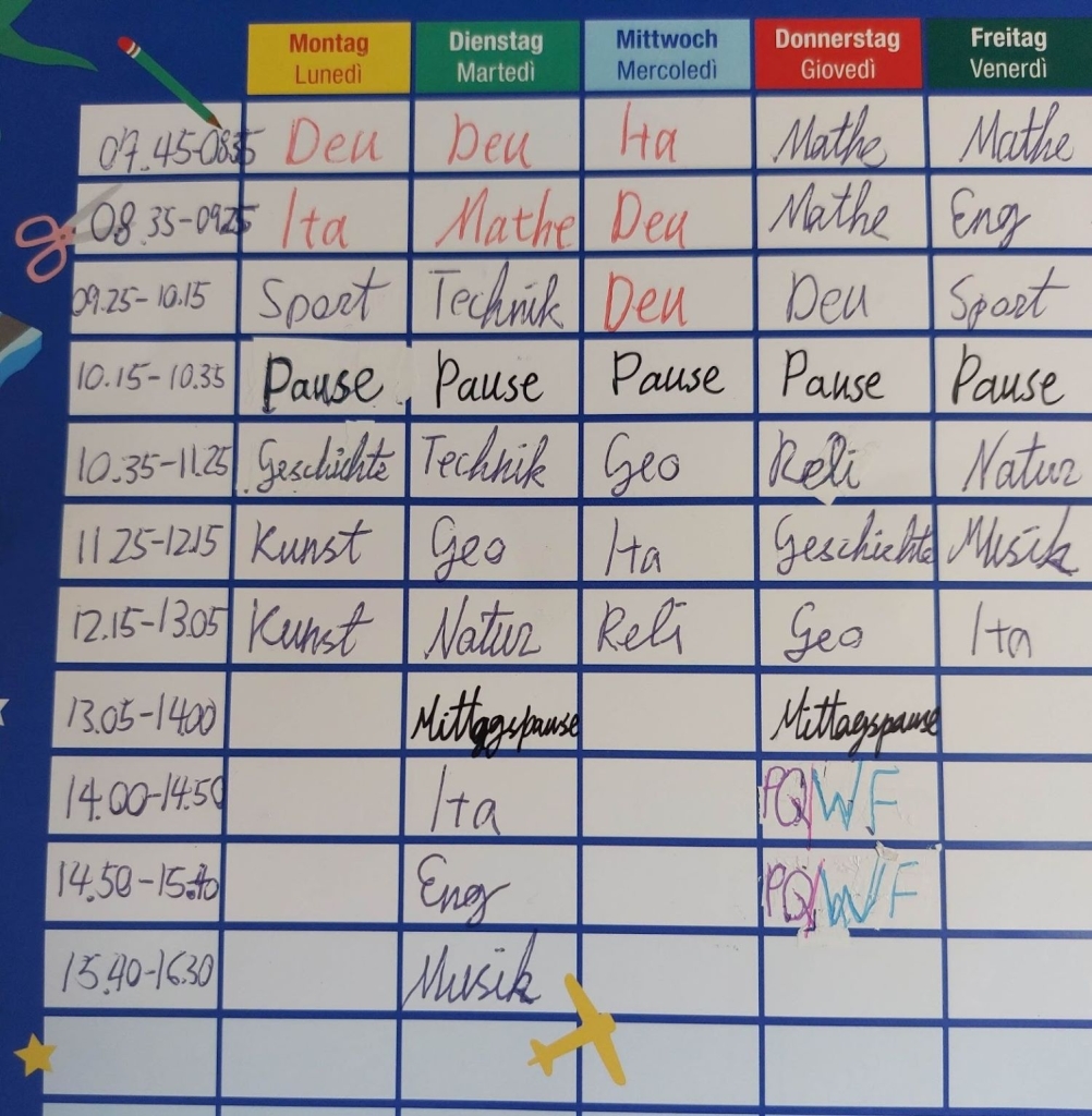 南蒂羅爾的國中仍然和小學一樣,一個星期只有星期二是全天課(另外有一個星期四下午是選修課),但國中課業明顯加重許多,許多人好奇,這樣的課程究竟要如何安排呢?就讓我們從學校的課表作息開始看起。