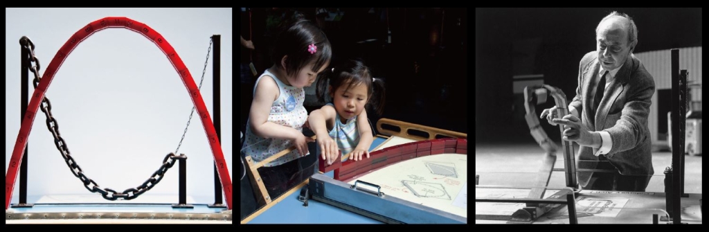 (右)創辦人法蘭克.奧本海播操作懸鏈線裝置© The Exploratorium, www.exploratorium.edu