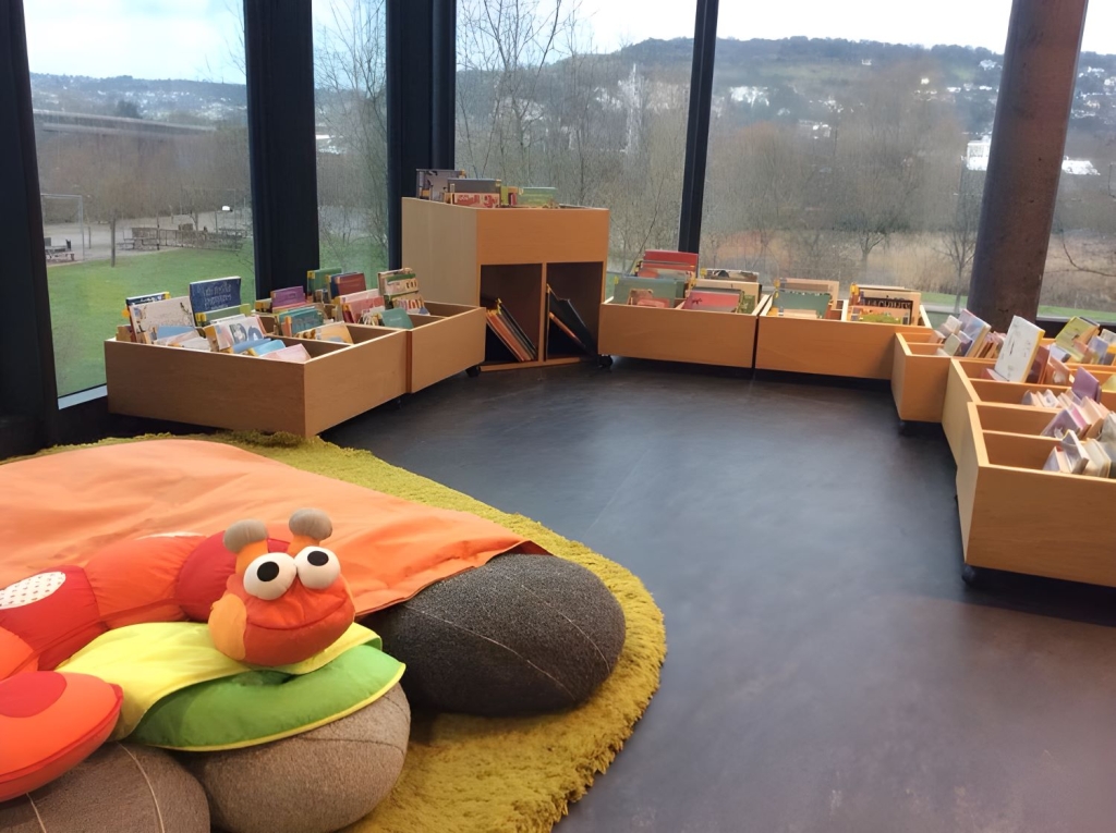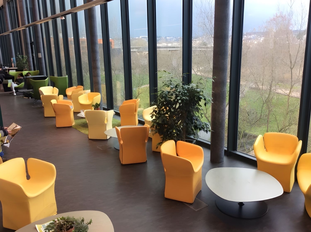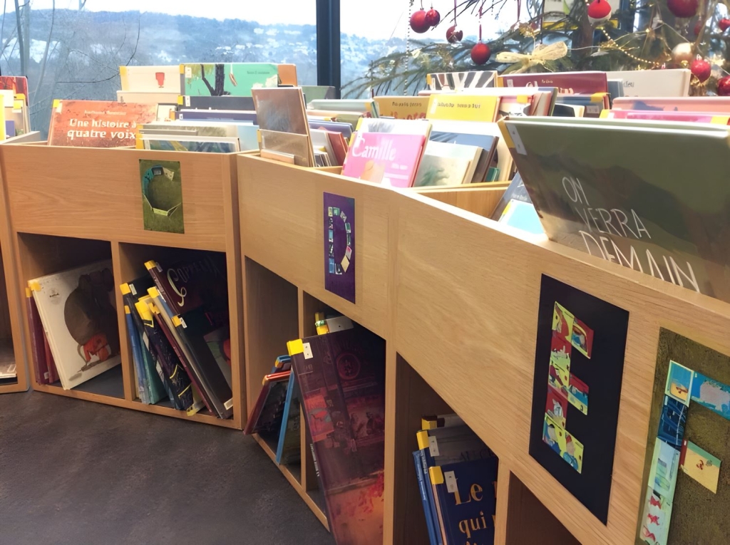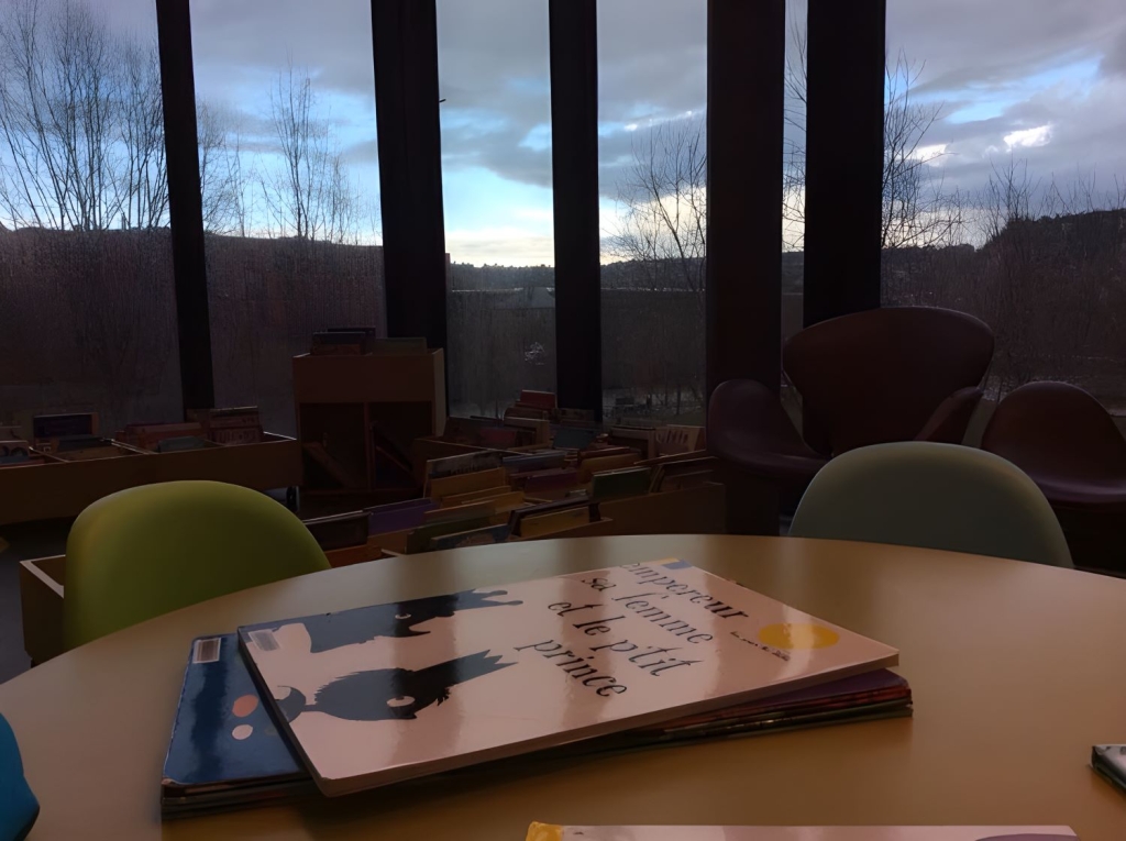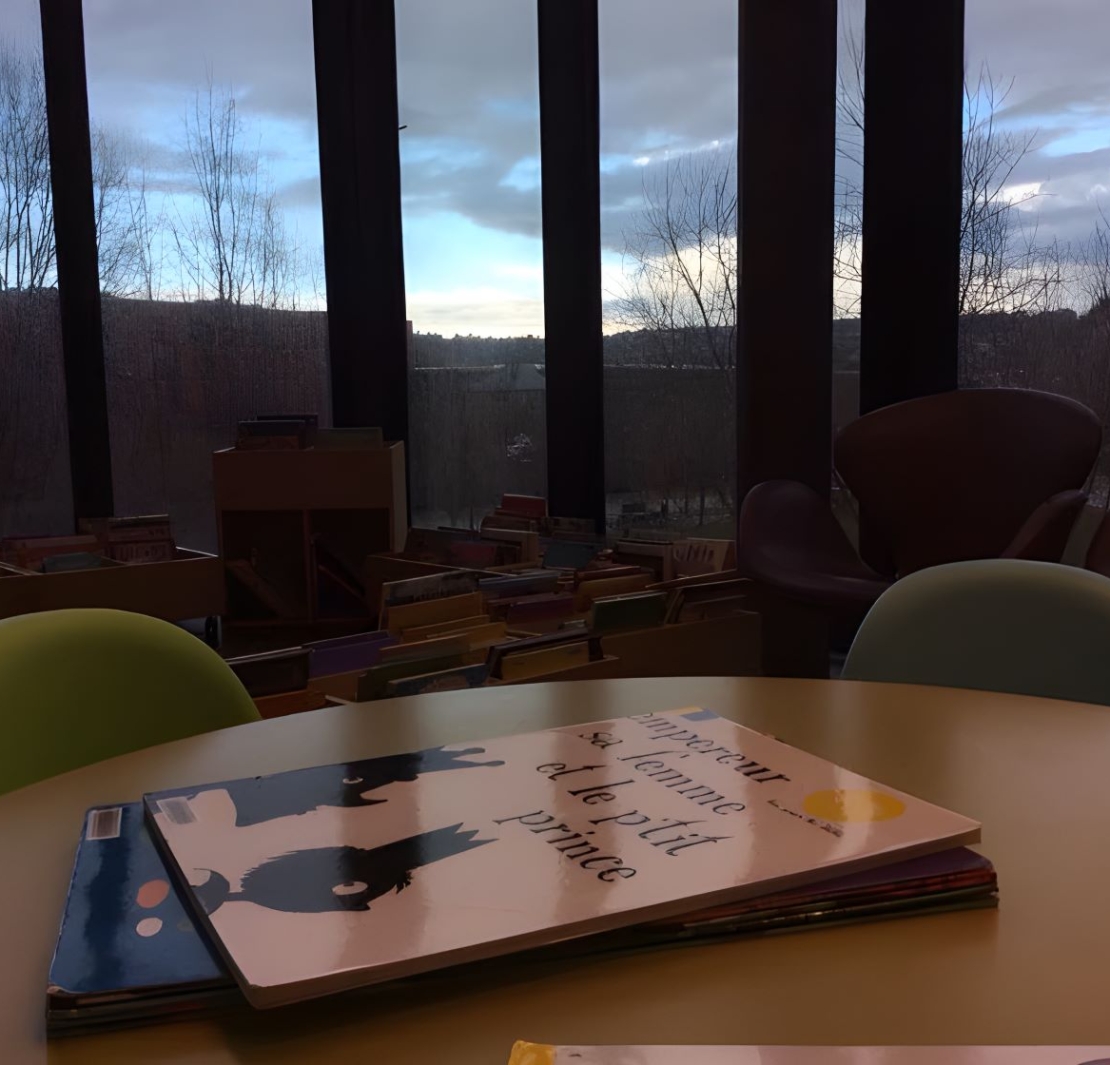 上回我們參觀的那間由教堂改建成的圖書館,位於城市地勢較高的塞納河右岸;而這間圖書館則座落在平坦的左岸,一座植物公園旁的Grammont文化中心(Le pôle culturel Grammont)三樓,從窗戶眺望,即能飽覽河畔天候多變的景色。