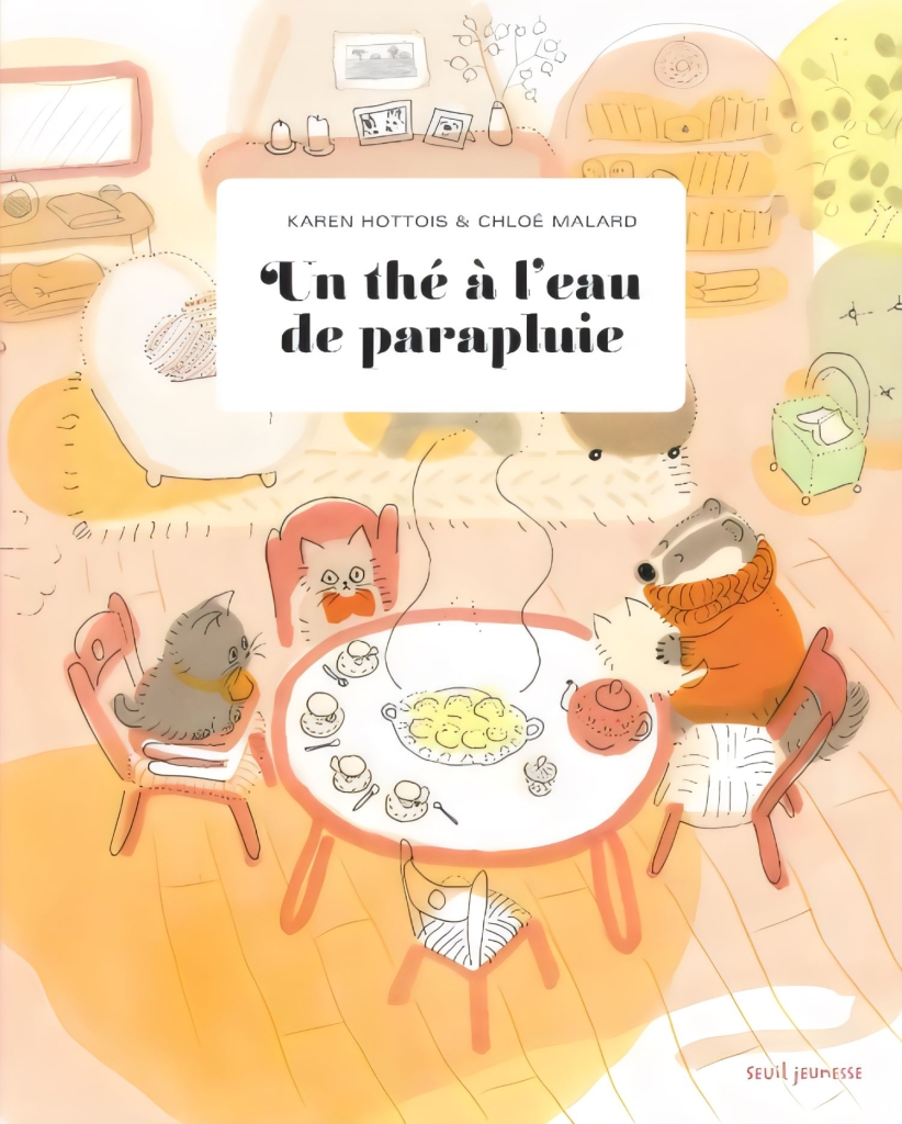 參加了幾次,自然形成茶友聚會似的,點頭、微笑、招呼、敬茶⋯⋯多美好的下午茶時光呀!想起一本帶點濕氣的喝茶繪本《傘雨茶(Un thé à l’eau de parapluie)》。