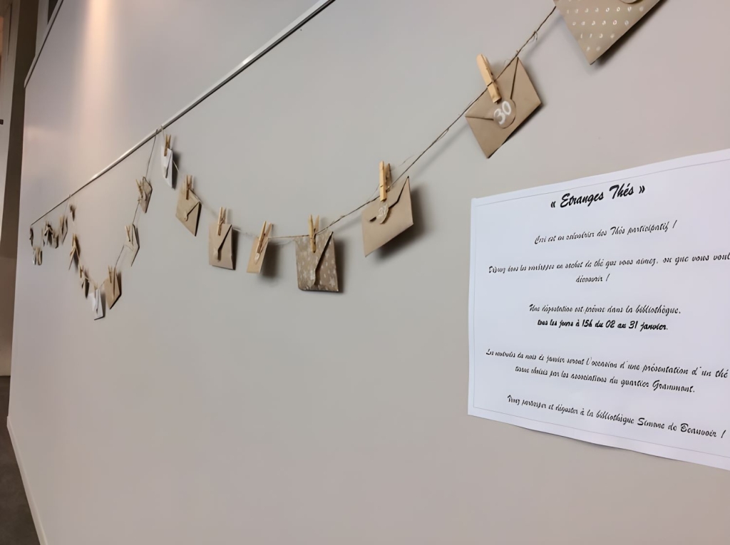 首次來訪離開前,忽然注意到素色牆面,綴了一串編了號的信封,好奇打開信封,喔!是認識異國茶文化主題活動——每個信封裡放著一個關於茶的小提問,自一月二日起,下午三點每天解開一道謎題,而每週五則舉辦用「口舌」認識不同茶文化的品茶會。
