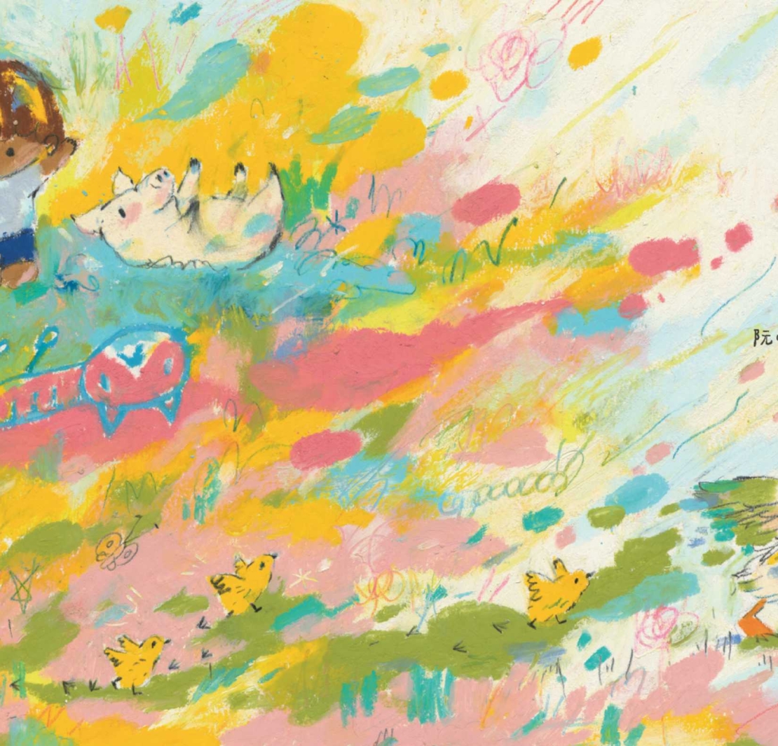 黃海蒂以油性粉彩為媒材,從海狗房東的文字牽引出一幅幅色彩明亮、溫暖稚真的圖畫,擅長描繪孩子姿態的她,以三位兒童角色呈現孩子「多元」與「獨特」的樣貌,其圖像語彙與日常貼近,又讓想像力展翅高飛。