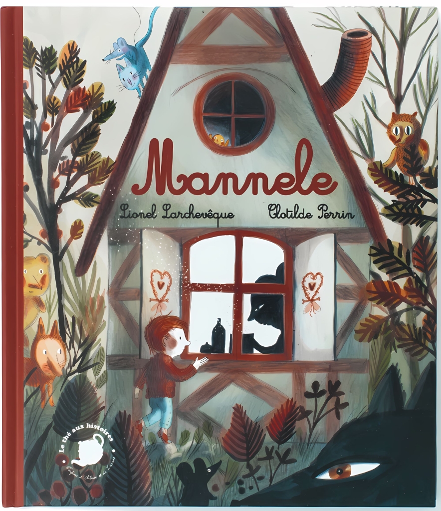Clotide Perrin有一本繪本書名就是《Mannele》,將這則地方傳說重新包裝,以講古口吻敘述,透過雜貨鋪之子的眼睛,帶領讀者一起體驗這趟恐怖歷程。獨居於黑森林小木屋的老太太,有張令人生畏的臉,村民都不敢接近她。每週老太太都會來採買一些食材物料,但某個星期六,老婆婆摔斷了腿,老闆請求兒子Vladimir幫忙送貨。