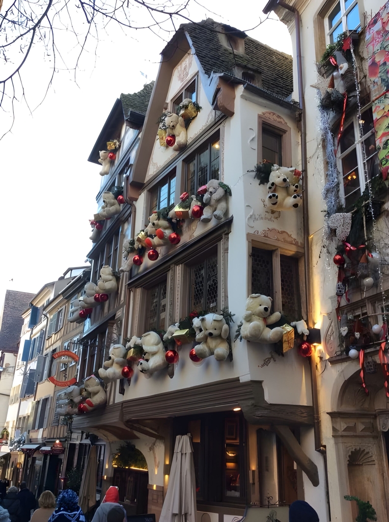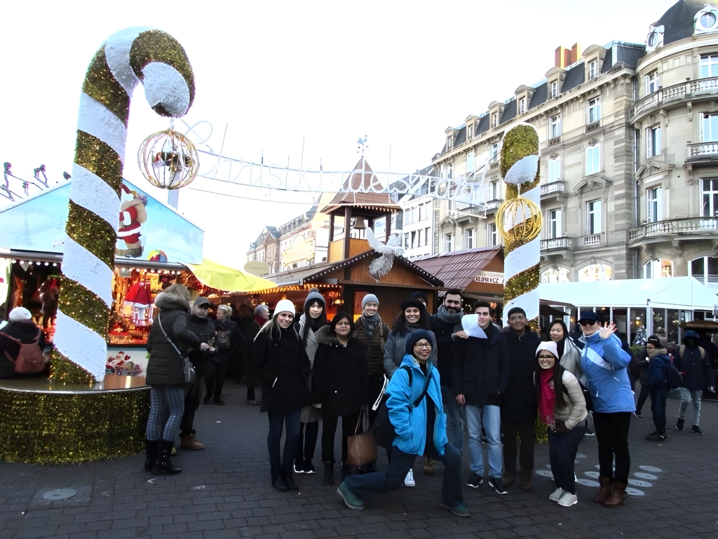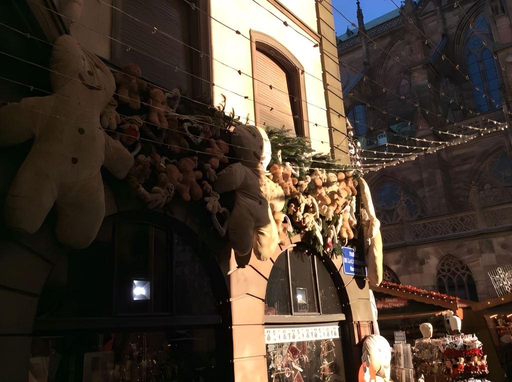 除每年十一月初會遴選一株高約30公尺的樅樹,矗立在克雷貝爾廣場Palace Kleber外,整座被伊爾河兩條支流環繞的大島Grande Île都是市集遍佈範圍,島內各處廣場設有不同特色攤位,琳瑯滿目的應景食物、手工飾品,可能撐了肚皮,瘦了荷包。同學相約逛聖誕市集,市集太大,攤位太多,逛著逛著⋯⋯就走散了!