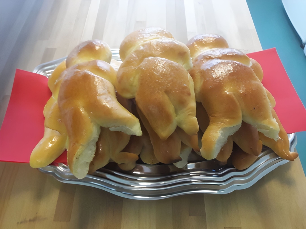 12月6日前夕(為什麼是這日期,後面會解釋),語言學校剛好安排吃吃喝喝聽故事活動,這才明白:那不是薑餅人,而是Mannele——亞耳薩斯方言的一種麵包,源起跟聖尼古拉拯救三個被屠夫殺害的三個孩子有關。