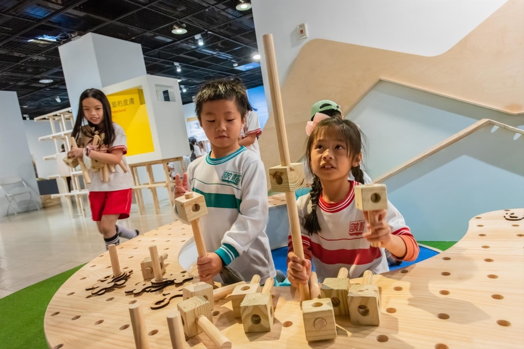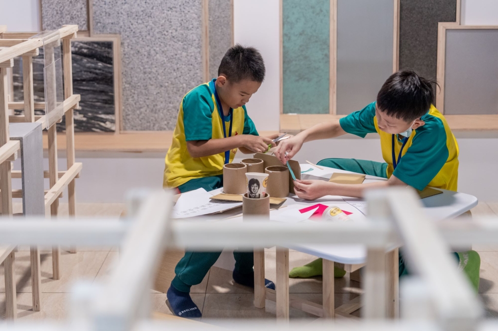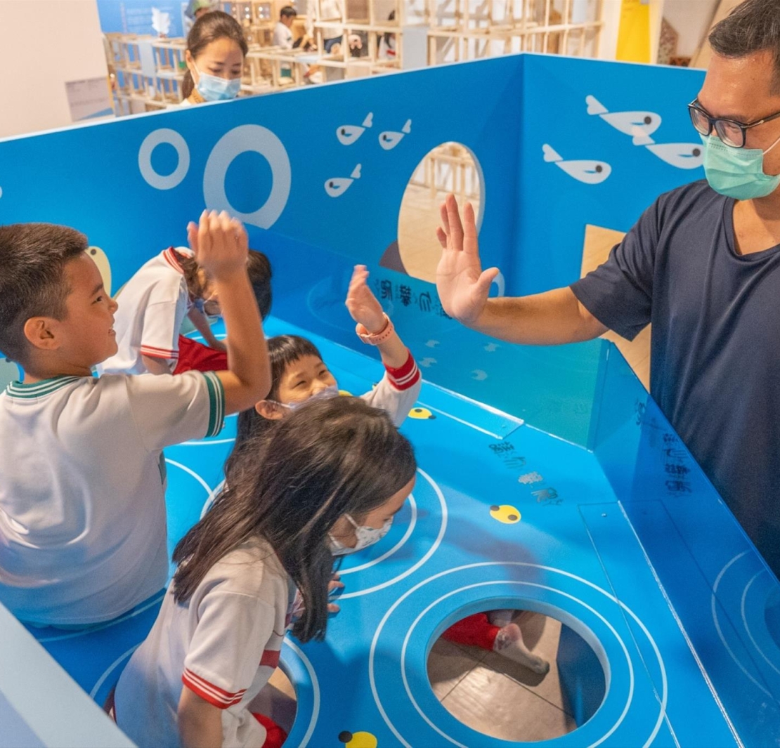 首站〈曲線好,還是幾何美?〉邀請小朋友化身為迷你建築師,在展區「我的建築工作室」中,從畫設計圖到玩積木,玩出建築的尺度與比例。