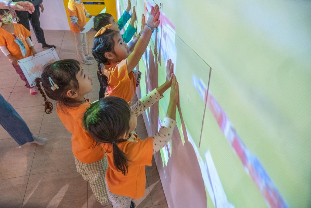 〈顏色啊!顏色!〉單元則是探討國際美術館如何運用顏色來定義建築的空間場域;並邀請黑碼藝識團隊設計互動裝置,讓孩子們揮灑色彩,創造專屬的建築表情,當某種色彩在畫面中漸漸增多,神奇的「色彩精靈」就會現身,為大家帶來充滿想像的色彩體驗。