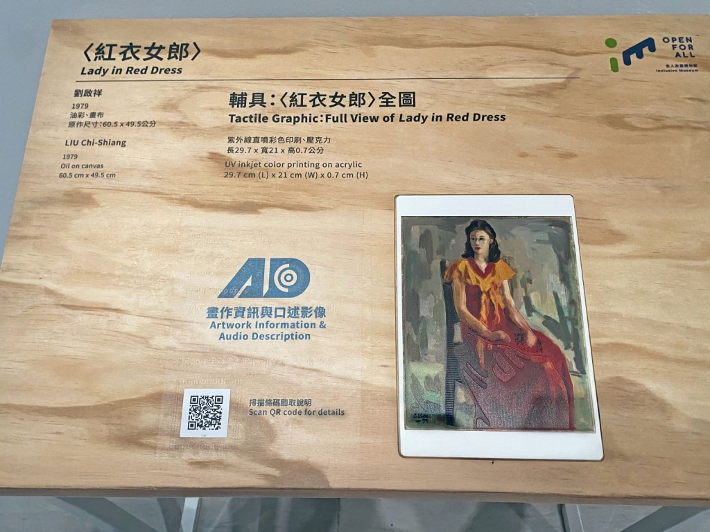 今天老派博粉想要帶大家,從本次展覽的視障服務「觸摸輔具」,一起用視覺與觸覺來欣賞劉啟祥的油畫〈紅衣女郎〉與許深洲的膠彩畫〈賞畫〉。明眼的我們或孩子,透過觸摸輔具,可以更深刻的感受到繪畫媒材的特色,以及藝術家對人物的美學刻劃。