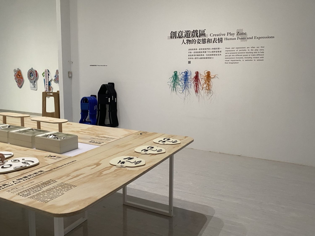 姿態和表情是我們對人物畫的第一印象,在展覽的最後,「創意遊戲區」也提供了可以擺弄姿態與創造表情的輔具,包括視障朋友的所有人,都可以盡情幫小綠人、小藍人、小紅人、小橘人擺姿勢,也可以運用眉毛、眼睛、耳朵、嘴巴等部位的線條變化,創造各種表情與神韻喔!