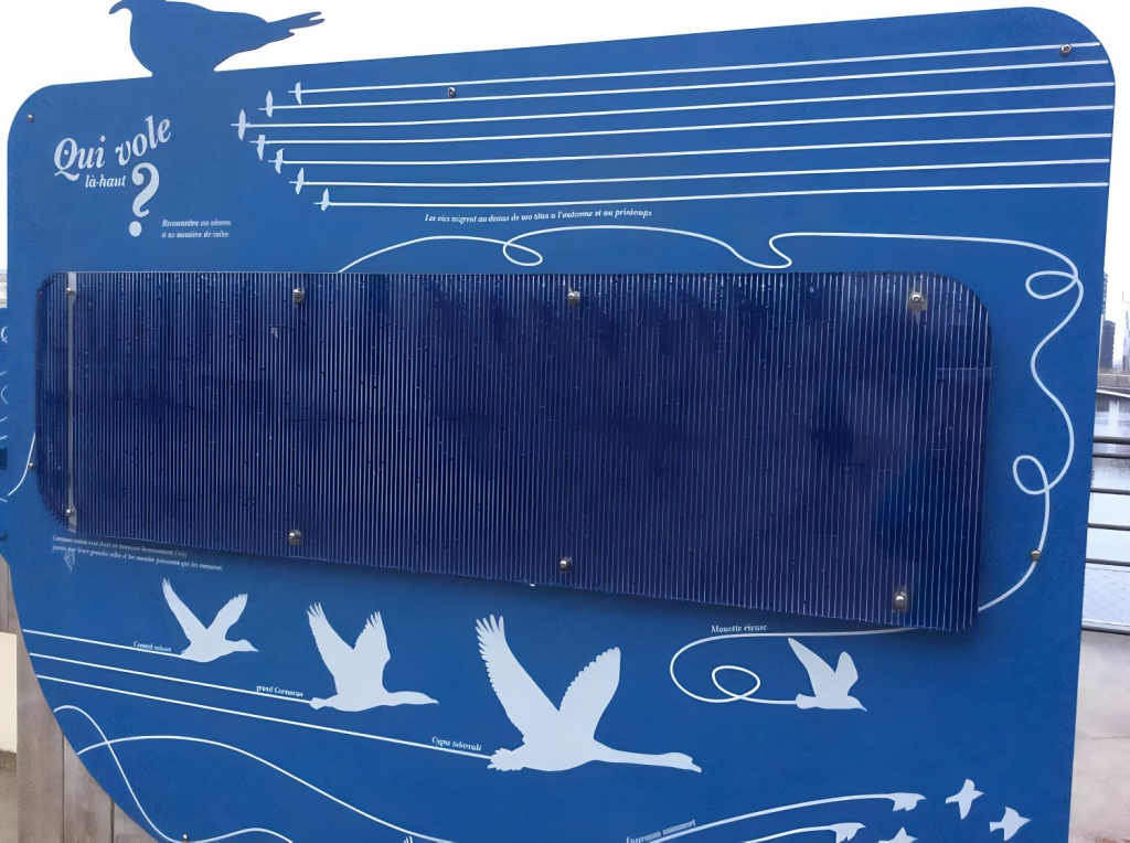 浮島運河旁一塊藍色看板引起注意,隨著腳步走近忽然發現那是一項互動裝置,以光柵形式介紹數種在運河畔展翅的鳥禽其飛行姿態。說到鳥禽類,亞爾薩斯區的吉祥物正是一種鸛,俗稱「送子鳥」,每年春天遠從非洲飛行至此繁殖後代。安徒生有一篇《送子鳥》,以第一人稱遐想這種紅喙大鳥為何成為「送子鳥」的緣由。