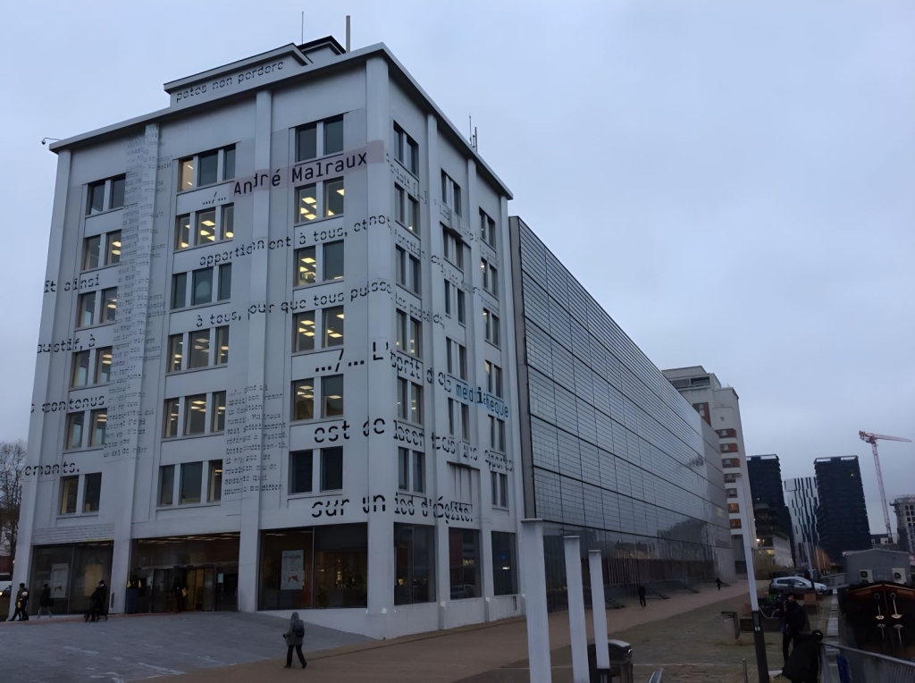而位在萊茵河支流掘成的運河邊,有一座前身是軍備港補給倉儲的建築,後被改造成法國東部第一大的公共圖書館,正是這回要跟著蹦豬一起泡泡的馬勒侯圖書館(la Médiathèque André Malraux或譯為馬爾羅)。命名源自André Malraux(1901-1976),作家、冒險家與政治家,於1959~1969年擔任法國首任文化部長。