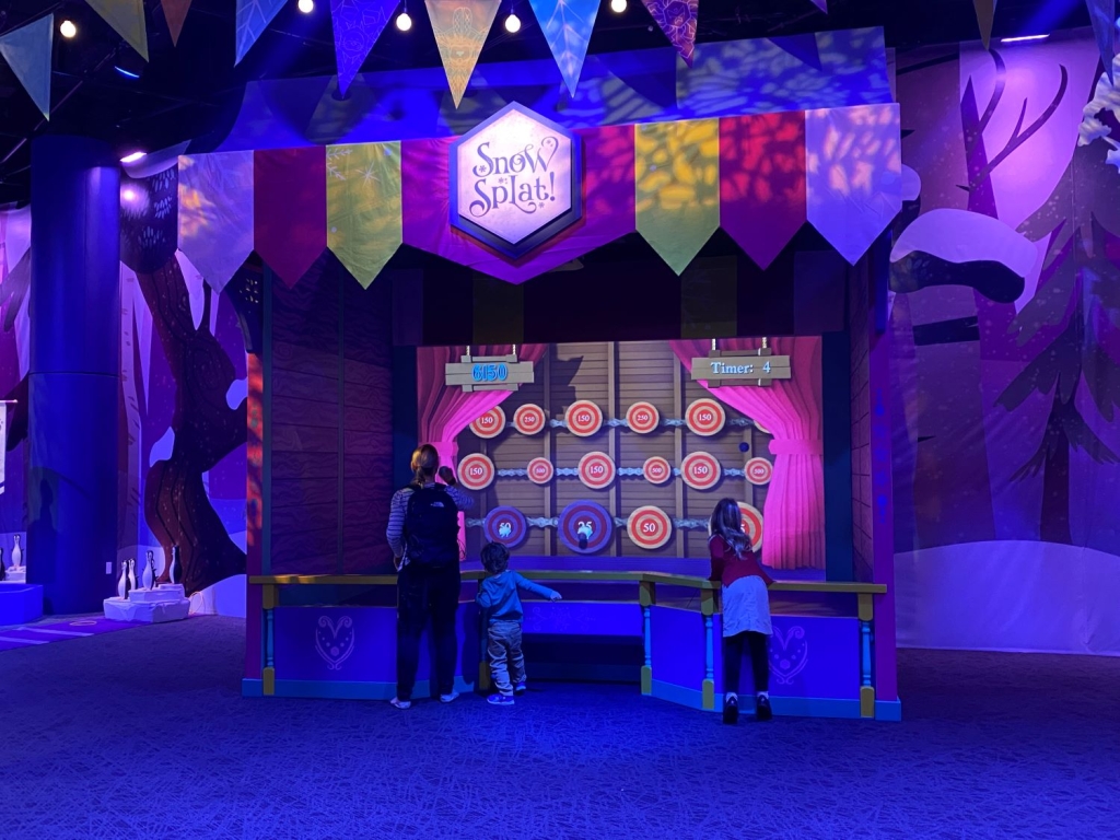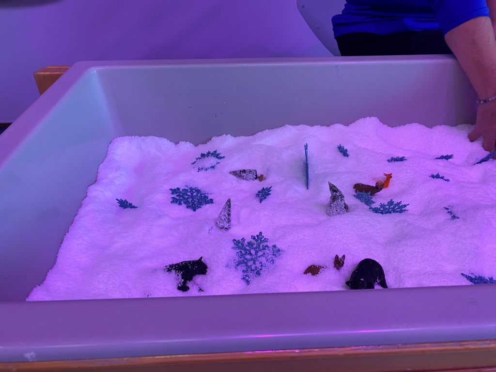 為了讓小小孩和陪伴者安心,Elyse不只與各組協調提早開放展間,更規劃相關的體驗活動(感官:提供人工雪讓孩子觸摸;觀察邀請孩子觀察數個冬天會出現的動物或植物小玩具;表達:提供白色蠟筆與水彩,讓孩子先用蠟筆畫下冬天的印象,接著用水彩讓白色蠟筆顯色),也和體適能經驗組(Sports Legends Experience)協調開放限定溜滑梯,讓小小和大人也能安心玩耍。