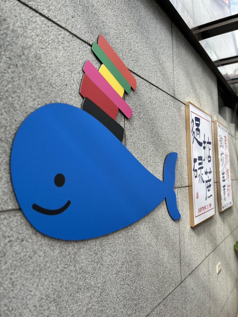 其實設計Logo的時候,我還沒找到現在的店面,但就是這樣剛剛好地巧遇上。很多客人留意到本屋裡還有一條頭頂著幾本書的鯨魚常常出現,設計師說鯨魚是我,因為我是帶著色彩繽紛的書游泳去台灣的。「本屋」二字亦是日文漢字,意思是書店。
