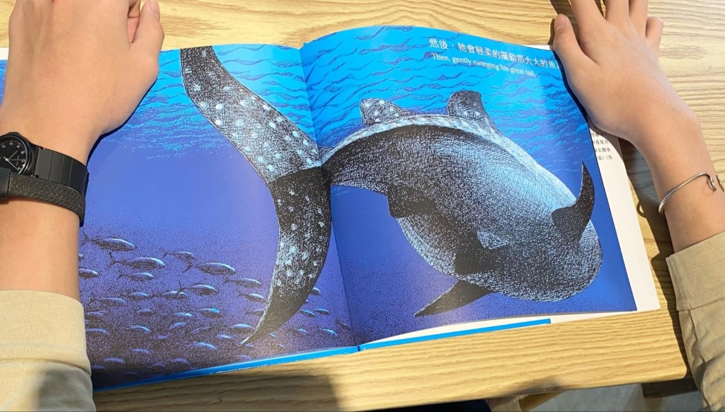 所以,我仍然不喜歡去動物園,但我會在書裡結識動物朋友,像是最近我就認識了新宮晉老師筆下的《鯨鯊》,翻動著藍色的書頁,看著巨大的鯨鯊翻過身,擺動魚尾,在充滿光的大海,緩慢又溫柔的游過眼前,和這樣的動物朋友作伴,我們可以一起到山裡、海底任何地方,一起分享各種奇想風景,書裡的動物園時光多麼美好,歡迎你跟我一起來打開這些書,走進書裡的動物園吧!