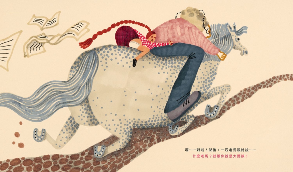 如果說,繪本中的小女孩,代表一位「主動的讀者」,爺爺則代表了一位「重新創作故事的作者」。我在教導創意寫作課時,曾經請學生重新創作經典童話,只要故事開始和結束的地方,跟原來的版本一樣,中間所有的細節都可以任意改變。學生們很享受這樣重新創作的過程,覺得自己擁有了「屬於自己的經典童話故事」。