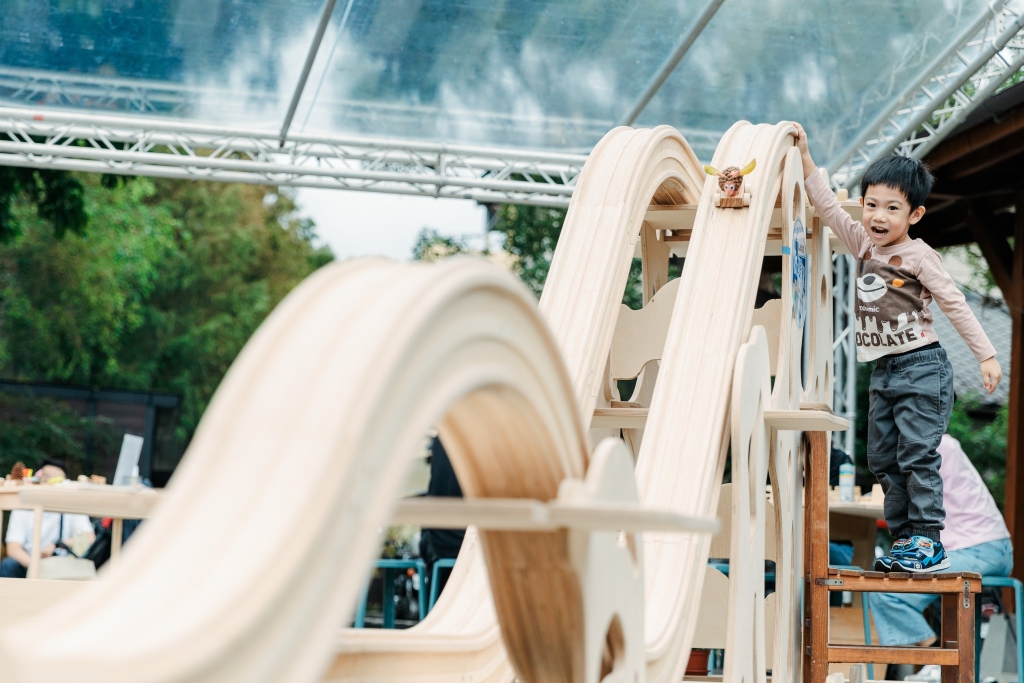七米飛行軌道現身茶山遊戲場,邀請大人小孩一起手作木飛車