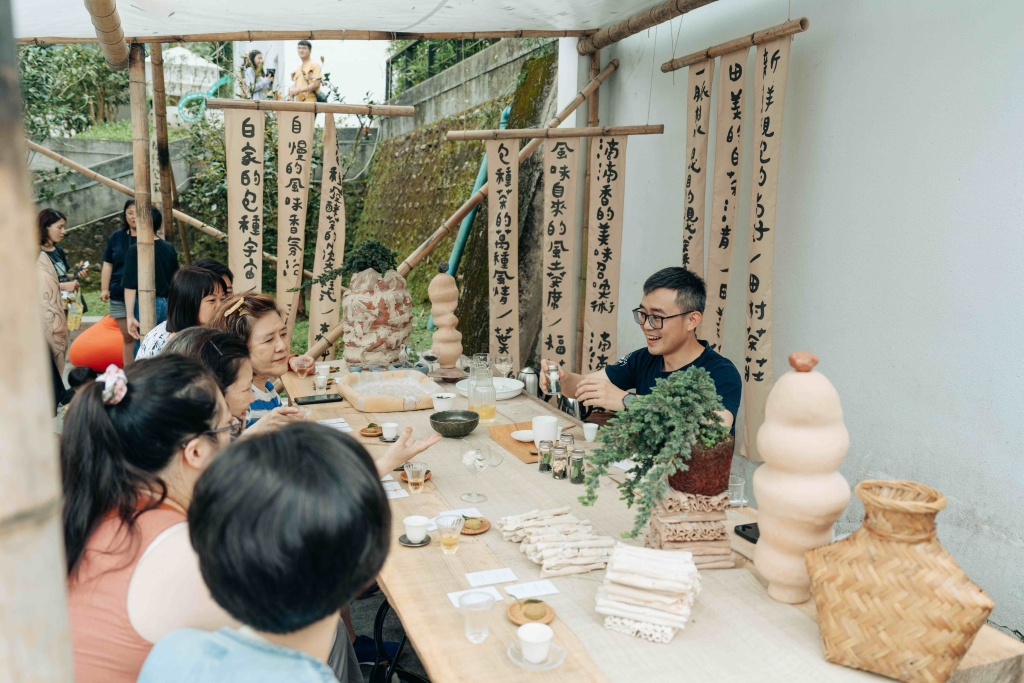 為了更貼近理想地,參與藝術家與品牌們在現地踏訪中汲取靈感,廚房的烏龜以現地光景作畫、phytooo則以擅長的鉤織藝術來描繪山與春日,一日茶道 Teaory 更攜手園藝治療師和陶雕塑藝術家,共同呈現「茶山裡有座春天美術館」,更邀請旅人探索隱身於博物館的氣味、礦石、花精串起的心靈聚落。
