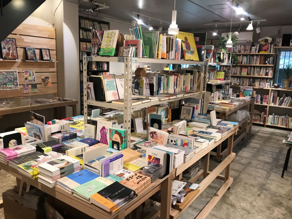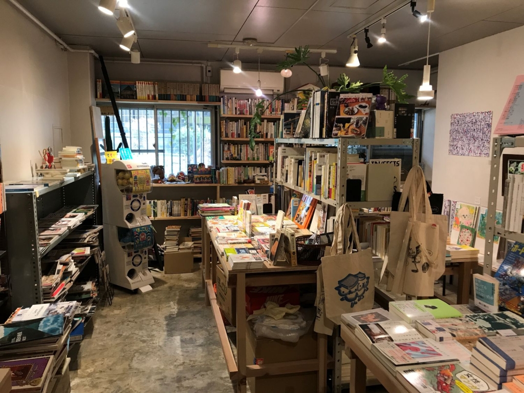 樓下是書店FOLK old book store,還有一個小小的展示空間,販售新書、二手書、個人出版物、雜貨、服飾、餐具等各類商品,範圍相當廣泛。特別是與藝術、音樂、電影、美食、漫畫等流行文化相關的書籍,甚至涵蓋社會議題與政治領域,擁有多樣化的選書特色。