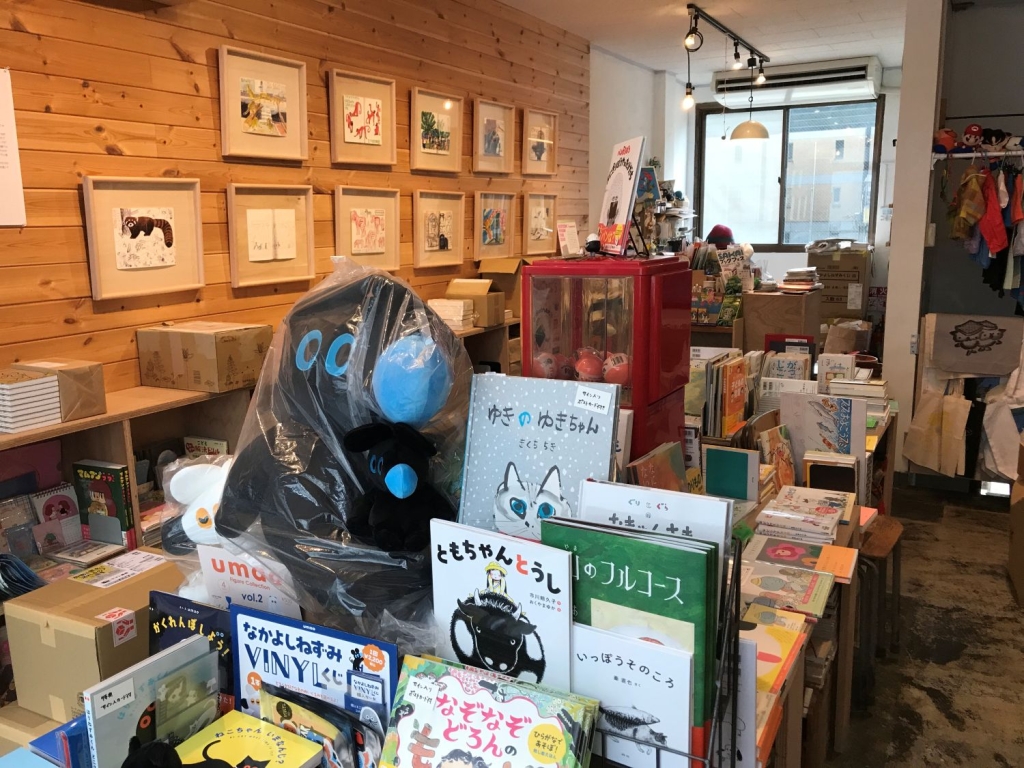 店內的空間並不寬敞,但在其中一面牆壁上展示了原畫,現場還有許多作家的簽名繪本。