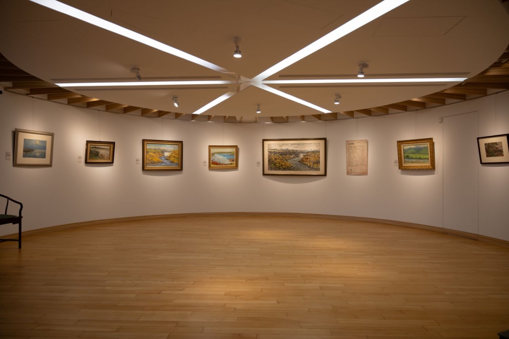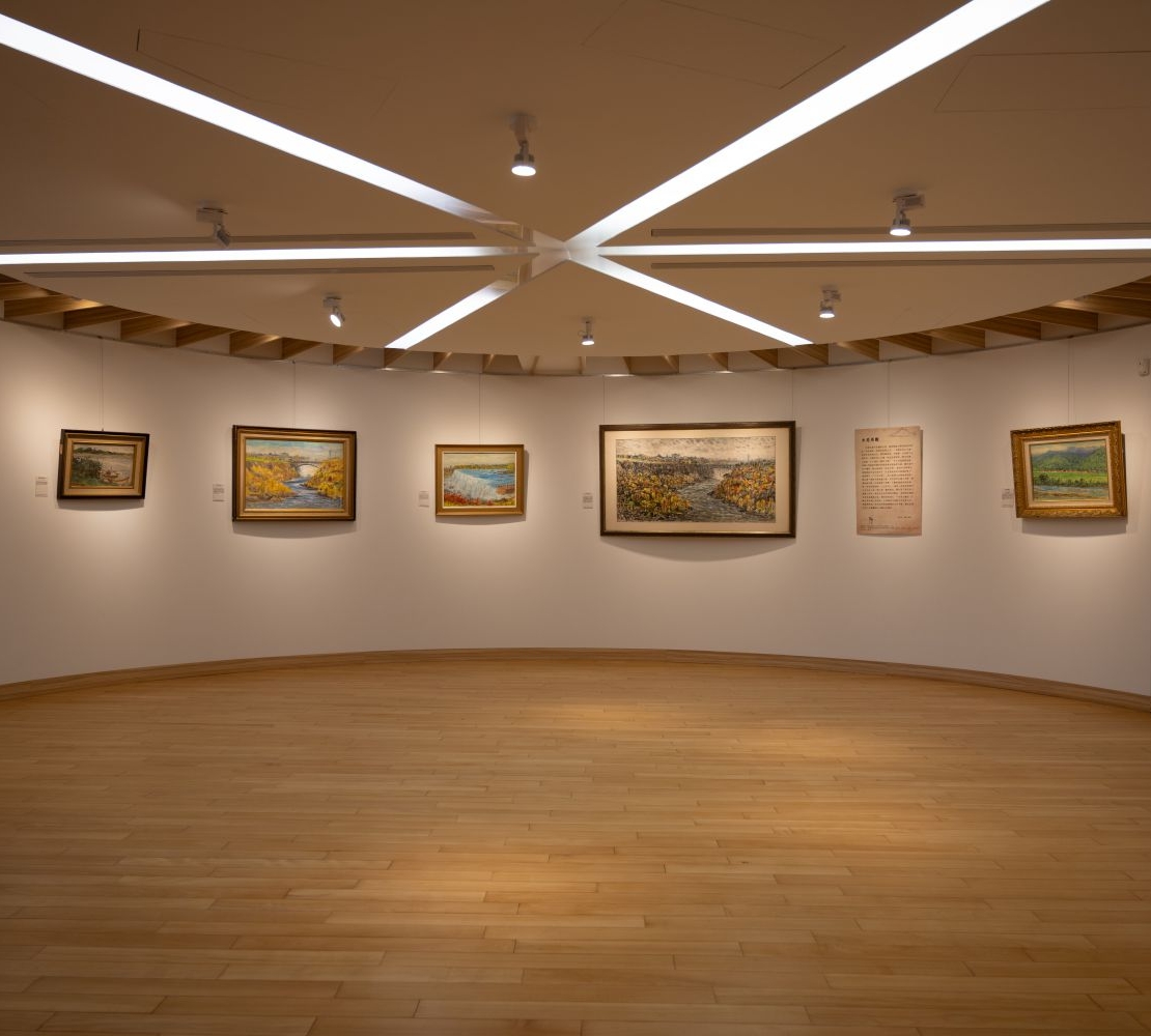 順著迴旋梯來到三樓,走進美術館門口,眼前這塊3/4圓形展示廳,就是美術館的主要展覽廳。