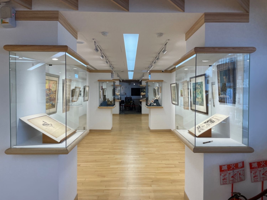 看完圓弧形展廳中展出的作品後,我們來到另一側的長形展廳。