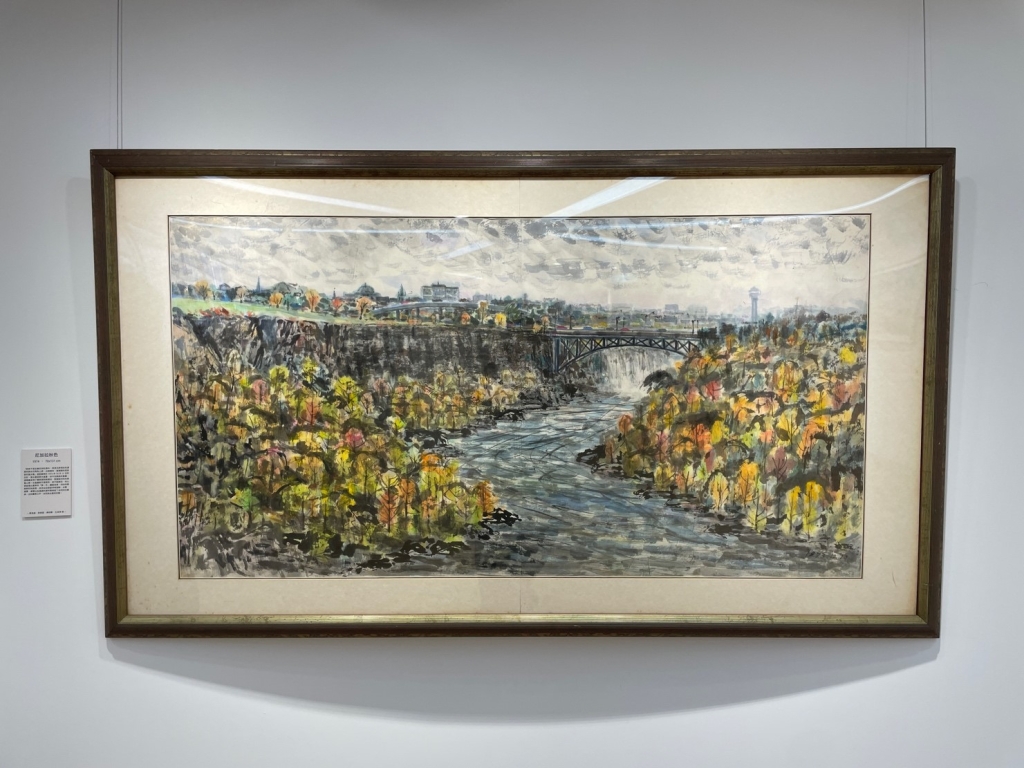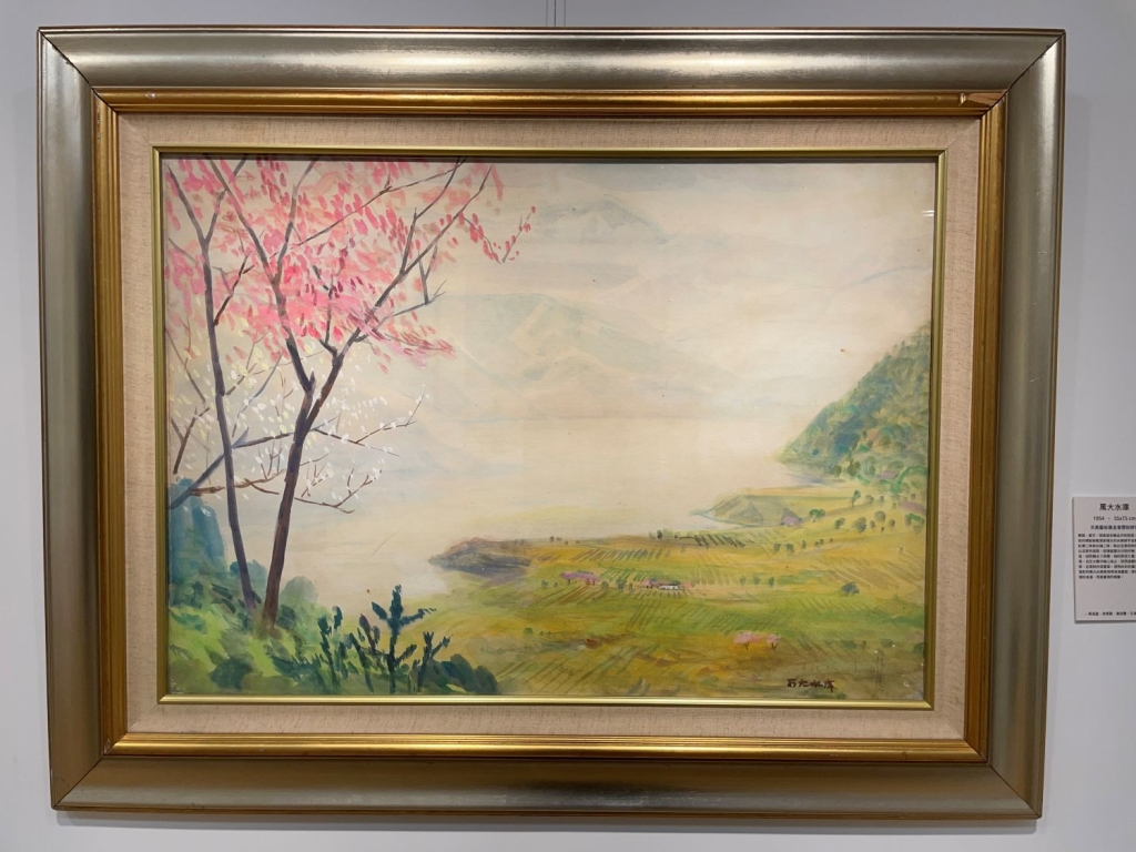 順著長方形展廳往深處走,還能看見藝術家為孩子、孫子們設計的摺紙,以及製作的燈籠,充滿創意與童趣。還有〈口琴橋〉、〈萬大水庫〉等風景畫作,能詳細的欣賞李澤藩老師如何運用水彩的半透明特質,描繪出空氣中濃郁的濕氣和典雅的詩意,既樸實又浪漫,就是李澤藩眼中的家鄉美景。