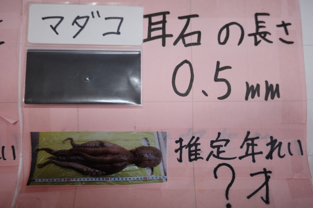 「耳石的位置,比我預想的更難找到。有的時候,我找了三十分鐘,也一無所獲。即使那麼困難,但是當我知道了魚的年齡時總感到非常有趣。我還驚訝地發現到,魚很大,並不意味它耳石也很大。章魚的耳石就非常小,鯊魚雖然是魚,但是,鯊魚並沒有耳石。