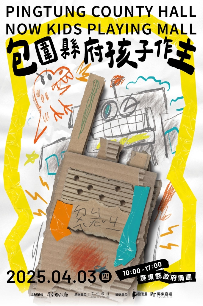 這場前所未有的兒童節慶典,讓孩子們擁有最大的發言權,不用門票,只要帶上好奇心與滿滿的電力,就能盡情探索這座城市的可能性,孩子們將以最奔放的方式玩轉縣府,讓這棟嚴肅的政府建築煥然一新,成為充滿創造力與活力的遊樂場,也讓孩子在遊戲中理解政策、體驗決策制定的過程,屏東縣政府誠摯邀請每個家庭,一起來見證屏東縣的「最狂兒童日」,讓孩子在遊戲中學習,讓童年充滿無限可能。