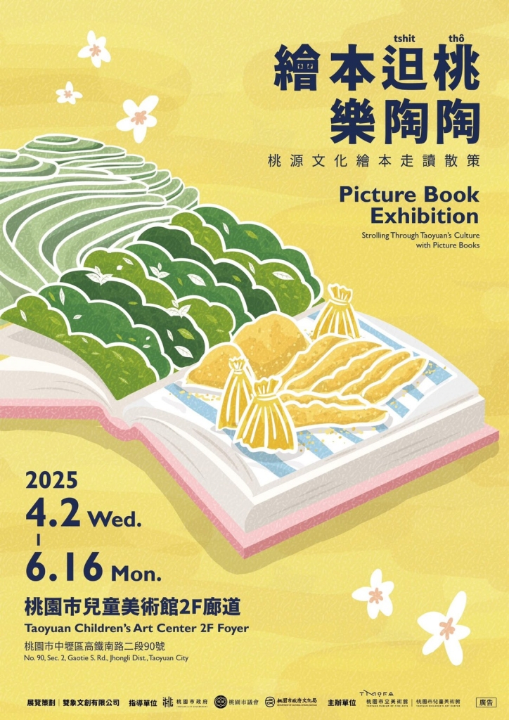 2樓長廊空間將呈現「繪本𨑨桃樂陶陶—桃源文化繪本走讀散策」展,透過農事、季節和地景的變遷交織,展開一場桃園文化走讀旅行。展覽以《茶香入夢》、《五月飛雪油桐花》、《田家兒女》、《田水甜 》、《採樟腦的人》等五本桃園市政府文化局經典讀本「桃源文化繪本」為起點,呈現桃園文化生活的立體文本風景。