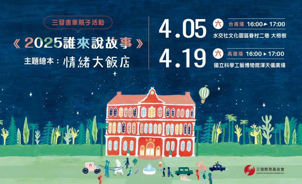 歡迎光臨!《情緒大飯店》主題繪本說故事活動!台南、高雄將由知名說故事團隊快樂鳥故事劇場 / 快樂故事島HAPPY姊姊 輪番上陣,現場還會出現巨大型繪本!邀請每一位小客人來探索各種情緒的奧妙!