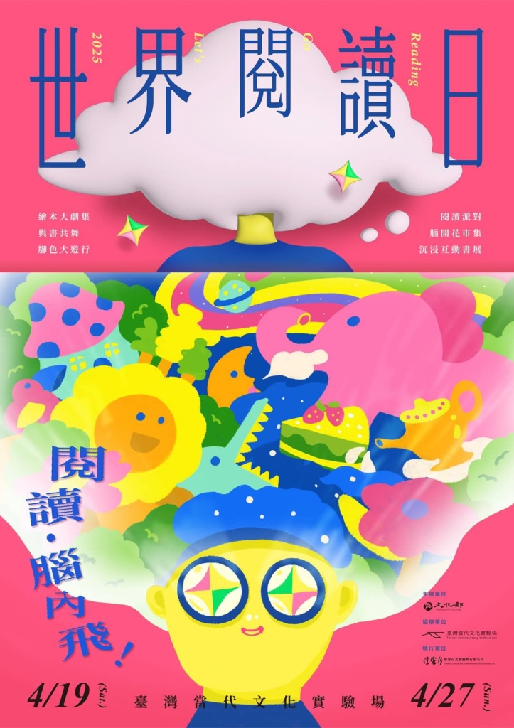 響應423世界閱讀日,文化部舉辦2025年世界閱讀日「閱讀.腦內飛」主題活動,將於4月19日(星期六)至27日(星期日)期間,在臺灣當代文化實驗場C-Lab,運用100本精選書籍,首度策劃連續9天,集結各式各樣以文本改編的精采演出、互動書展與說故事等一系列閱讀與表演藝術的跨界文化體驗活動,希望讓閱讀從紙本走進生活、走進人與人的連結,也走進孩子們的成長記憶。