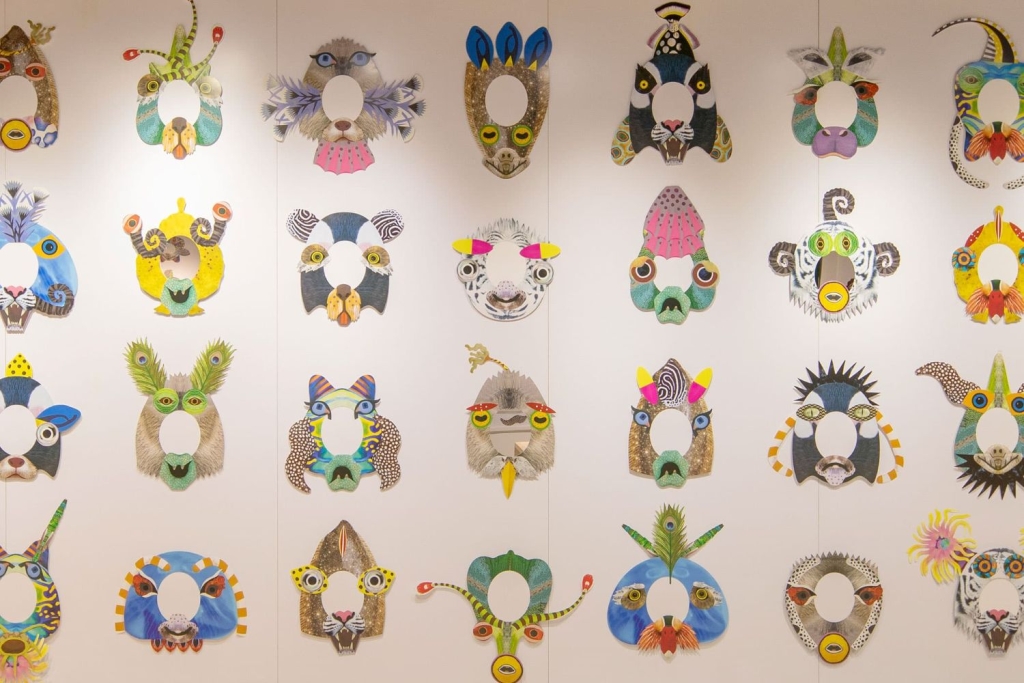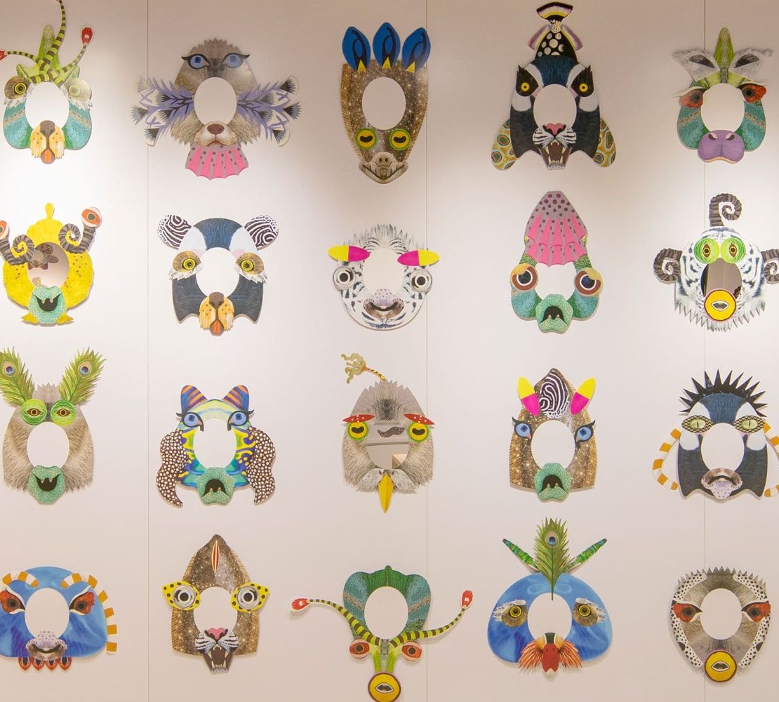 最後的工作坊區則結合了 tupera tupera 設計的動物面具。這個創意源自館長小畑先生的一句話:「自然界的生物外表各不相同,但人類雖然長得都很像,內在個性卻千差萬別。」