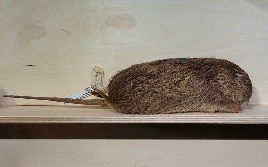 值得一提的是,「有『模』有樣」單元展出8隻珍貴鬼鼠(Bandicota indica)標本,由日本教授青木文一郎在1934-1935年間採集製成。鬼鼠是臺灣最大鼠類,曾廣泛分布臺灣低海拔荒野農田,因啃食作物被視為害鼠;隨著生態環境改變,如今鬼鼠成為須受保護的物種。這批近百年的棍棒標本不僅展現早期標本製作技術,也見證臺灣百年生態環境的變遷,深具意義。
