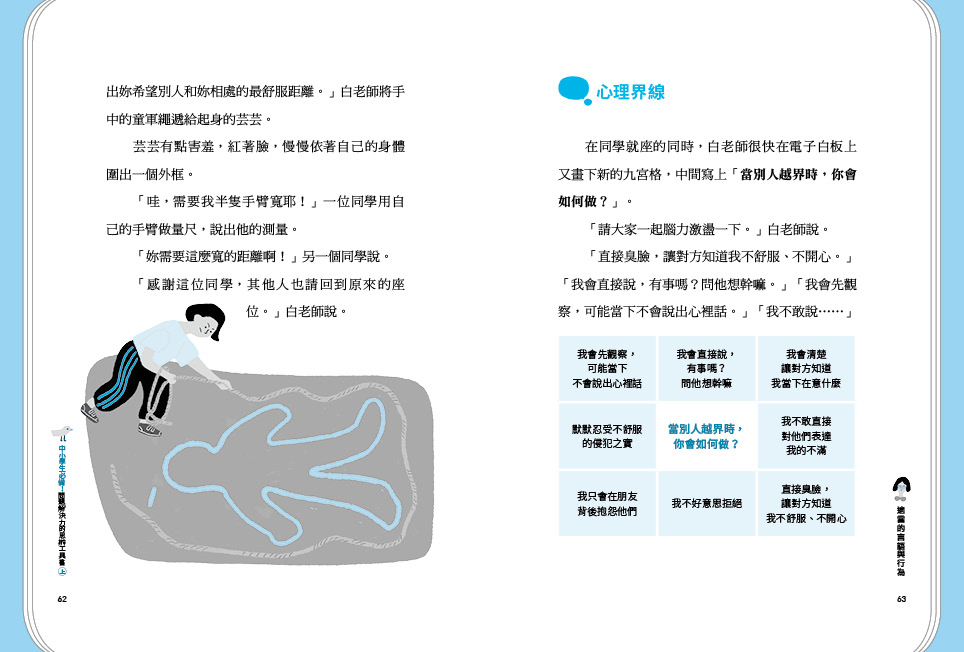 書中的故事都是孩子熟悉的情節,例如讓青春期孩子臉紅心跳的戀愛,到底什麼才是合適的戀愛行為?