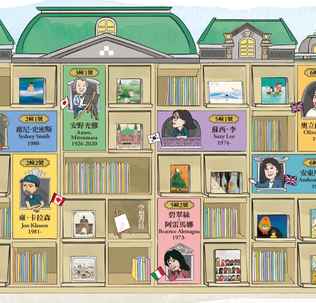 除了台灣在地繪本作家,也匯集英國、美國、加拿大、法國、義大利、日本、南韓等多國著名繪本插畫家作品齊聚,宛如比鄰而居。曾獲國際安徒生插畫大獎的兒童圖畫書大師「安野光雅」、獲時代雜誌封為童書界畢卡索的美國繪本作家「莫里斯.桑達克」、韓國首獲國際安徒生插畫獎項的藝術家「蘇西.李」等帶來豐富多彩創作,邀請大小讀者與不同時空背景的精彩繪本故事相遇!
