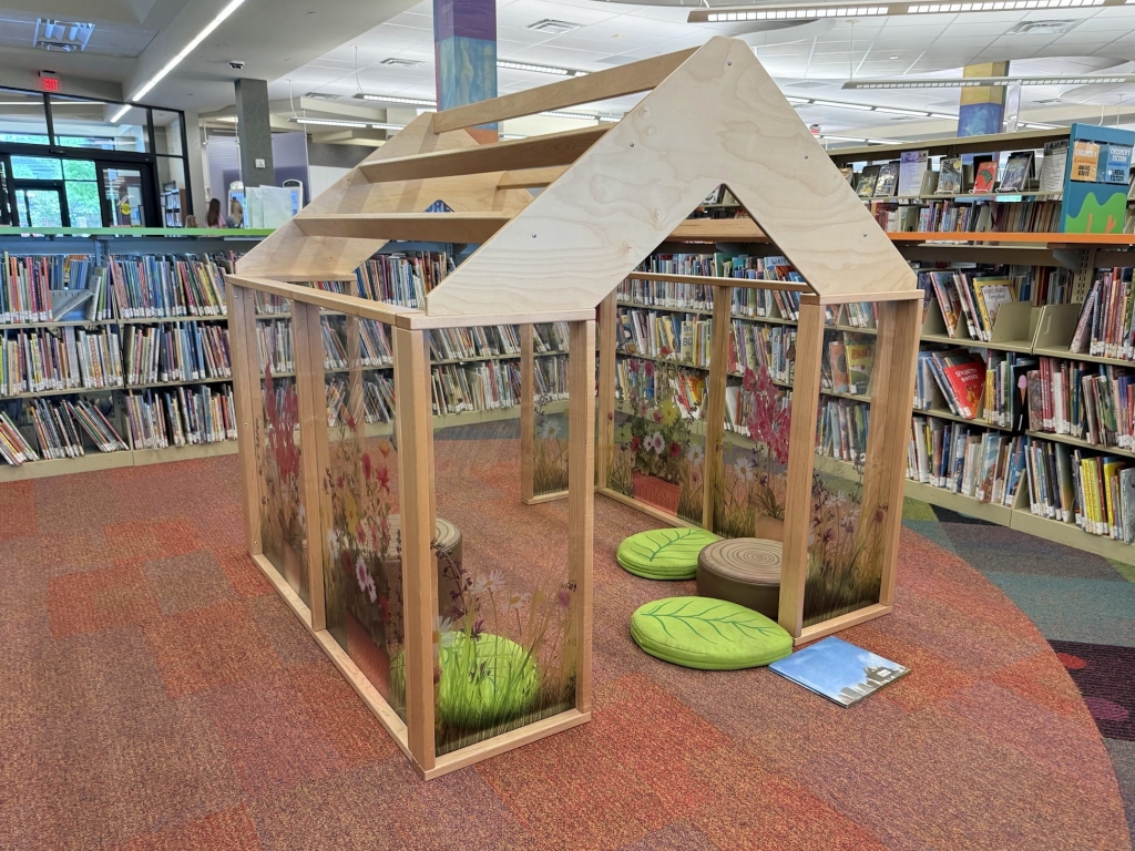 書架圍繞的空間,還有可愛的閱讀角落設計,例如溫室造型的小房子裡有舒服的坐墊,讓孩子可以躲在裡面或坐或臥,享受故事的世界。如同前述的阿靈頓圖書館,這間圖書館也有專為孩子設計的「感官室」,為特殊需求孩子提供降躁及刺激感官的設施。由於圖書館附近綠地廣闊,圖書館的建築使用大片玻璃,並設有露台,大、小讀者可以在戶外的桌椅閱讀或享用點心,充分融合室內與室外的空間,讓閱讀不只是在室內進行的活動。