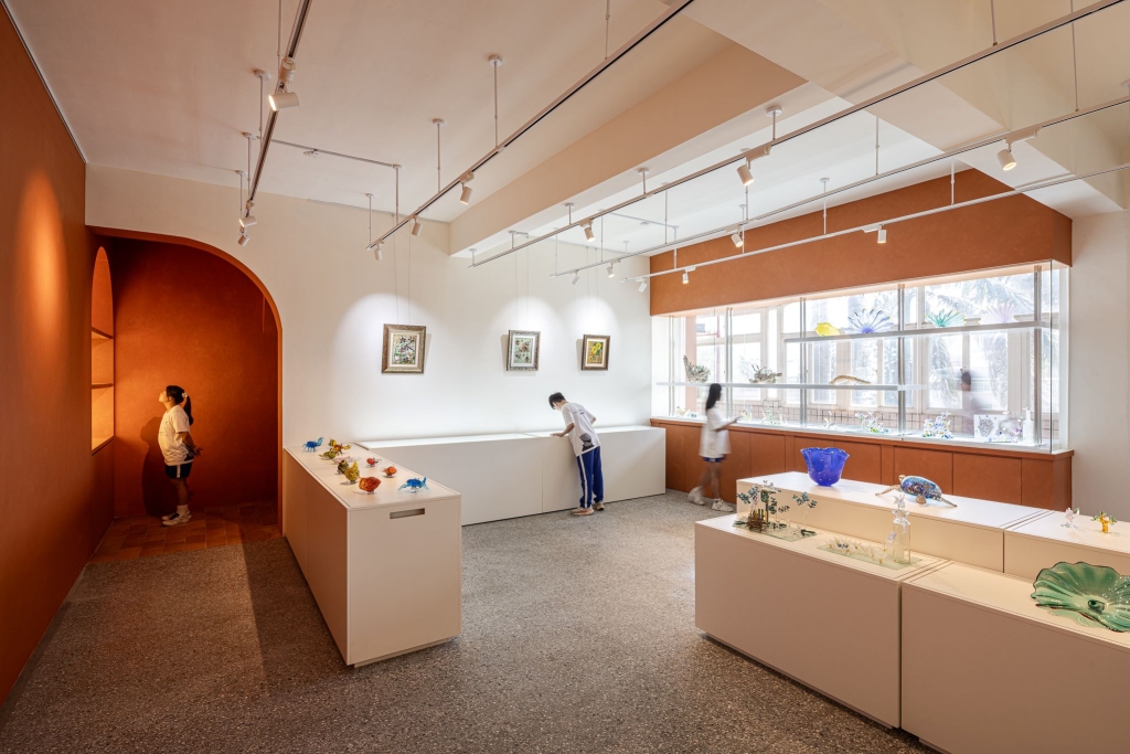 例如新竹市富禮國中與偶然設計合作改造的玻璃工藝展示室,運用色彩、光線與動線設計打造沈浸式觀展體驗,喚起學生對傳統技藝的傳承意念,在「開放與在地」主題下具體展現教育與地方文化共構的可能性。