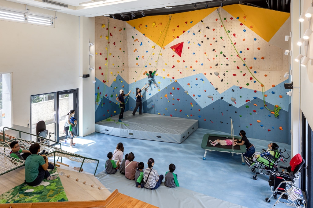國立臺東大學附屬特殊教育學校則打造全臺首座特教生室內攀岩場,林可方與陳宣如建築師以原民神話繪本《樹上的魚:Lokot鳥巢蕨》為設計靈感,將原本使用率不高的階梯教室轉化為具探索性、挑戰性與安全性的探索場域,並結合不同挑戰強度的攀岩設施,創建一個從海洋走向森林的挑戰旅程,讓不同能力的特教學生都能探索自我與強化肢體發展。