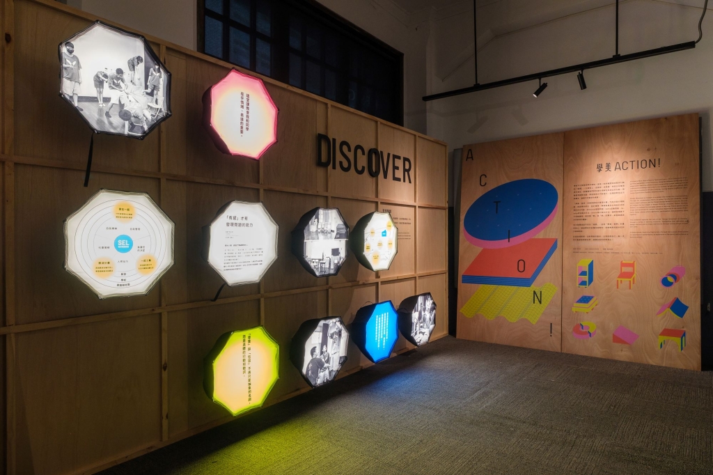 本次展覽透過不同的「場景」,呈現「學美・美學」計畫的核心,透過學校的各種改造案例,探索教育與設計如何交織與對話。在這些場景裡,沒有預設的劇本,主角就是自己。每一次的行動都是探索世界、演繹自我的即興演出。