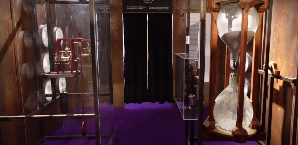 推開一扇神秘大門後,你會先通過時光機前往另一個世界,沿途擺設著各式各樣的鐘錶,還有一個大沙漏,讓人思考時間是什麼?時間為什麼存在?為什麼有時候感覺時間過得快有時候又感覺時間過得很慢?