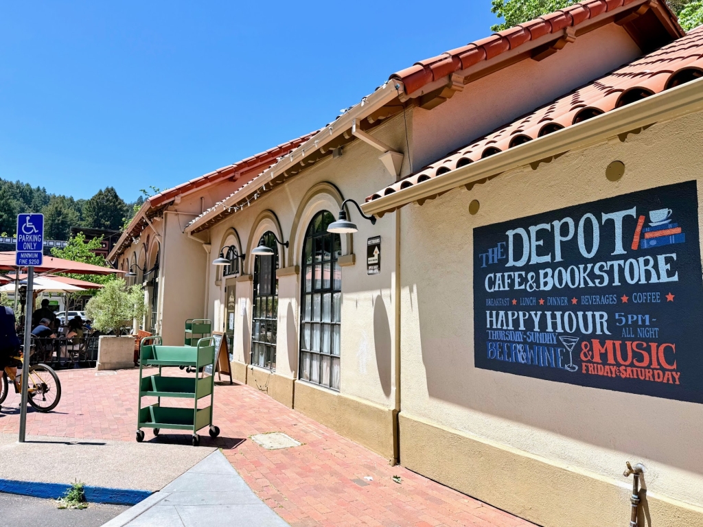 這裡有一間由舊火車站改建的複合式書店Mill Valley Depot Café and Bookstore 結合咖啡館與小書店,雖然空間不大,卻陳設溫馨、選書用心,販售童書與自然主題書籍。書店外的紅磚廣場是昔日的車站月台,現在還擺放著一台鐵道客車的複製品,以及一座用銅板做成的熊媽媽與熊寶寶雕像。廣場是居民散步、親子玩耍、藝人表演的共享空間,很適合在逛完圖書館之後,來此曬曬太陽、享用餐點,度過悠閒的一天。